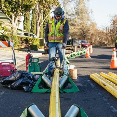 Anvil partnered with PG&E to provide safety upgrades to their natural gas pipeline system throughout the Sacramento Region. The Gas Pipeline Replacement Program (GPRP) was enacted by the California Public Utilities Commission and PG&E to improve critical gas infrastructure and upgrade customer gas services. Anvil’s Project involved replacing outdated and leak prone steel/ plastic pipe with modern new piping. Using updated pipe material and fusion techniques, this new pipe is resistant to corrosion and earth movement. Anvil’s team used Horizontal Drilling and other forms of excavation to install (90,000 LF) 16 miles of 2”/4”6” pipe and almost 1800 services throughout the Sacramento Region. This installation improved PG&E’s overall system reliability, decreased leaks, lowering maintenance, and energy costs.